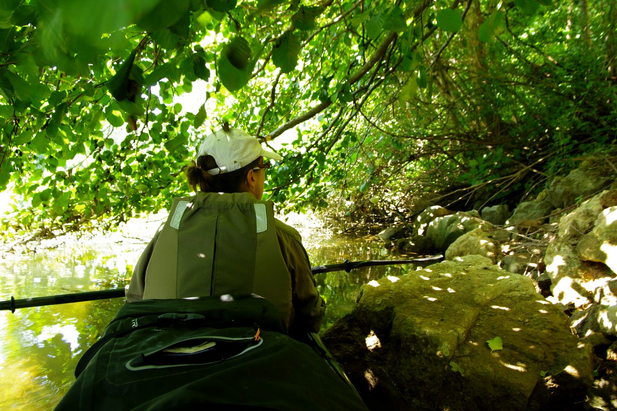 Et c’est là que nous avons mis à l’eau avec Julie. Cette journée commençait bien… Un superbe soleil venait illuminer les berges du Tarn, mais quelques nuages au loin assombrissaient le ciel et nous rappelaient que l’orage n’était pas loin… Il ne fallait donc pas trop tarder… C’est un peu pour ça qu’on avait décidé de faire une petite prospection pour revenir avant la fin de l’après-midi.